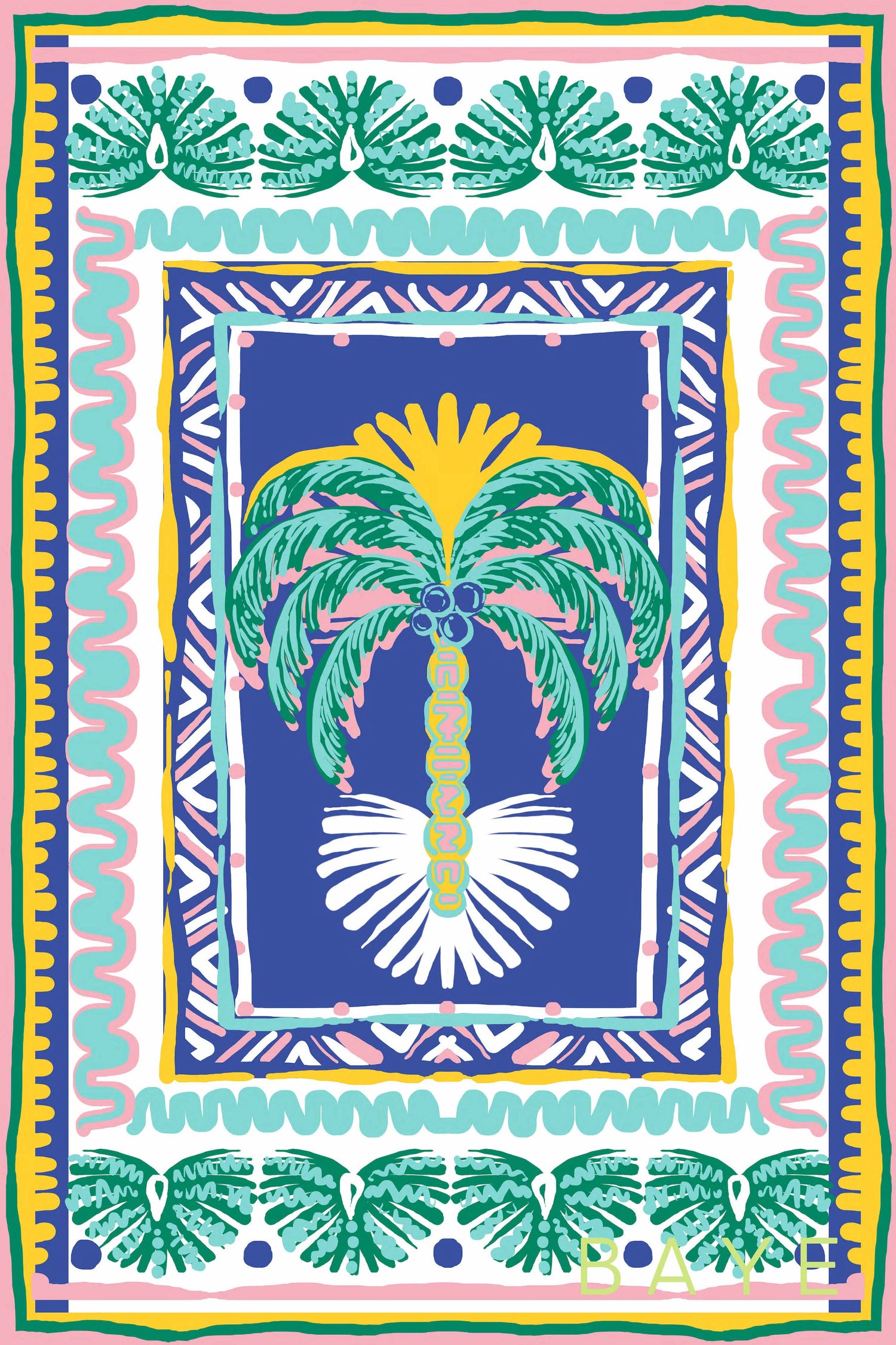 The Florida Palm Collection channels vibrant coral and blue tones with lush palm motifs, echoing the laid-back sunshine lifestyle of her new coastal home. Exotic palm-leaf prints in bold blues and corals capture coastal serenity and tropical energy.